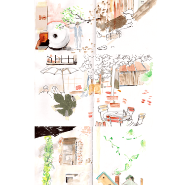 Through drawings and handwritten notes filled on the spot, it captures everyday scenes, typical yet mundane places, and encounters with all kinds of Weidener.